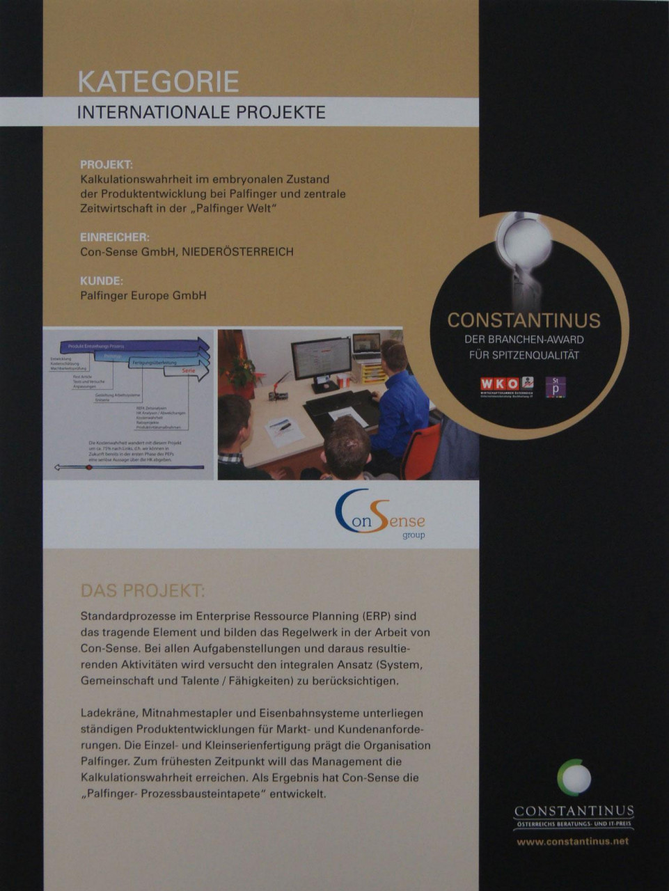 Wir von Con-Sense GmbH wurden in der Kategorie „Internationale Projekte" nominiert. Unser Projekt hat ein hohes Maß eines produktionsorientierten Charakter – sprich es ist ein Projekt eines großen OEMs der halt richtige Produkte zum Angreifen und Arbeiten produziert - und dieses Projekt war das einzige mit diesem Charakter unter den Nominierten. Dies bei 42 Projekten.
